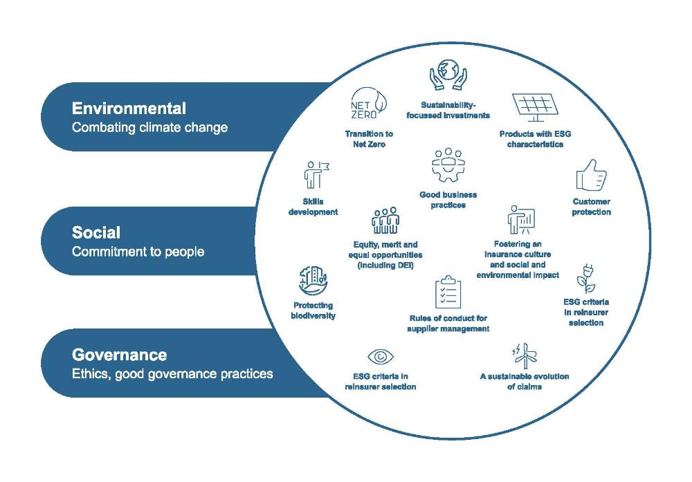 U svojoj politici održivosti Intesa Sanpaolo Assicurazioni S.p.A. definirala je sljedeće smjernice za vođenje svog odgovornog i održivog poslovnog modela: